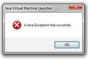 Wenn Sie dagegen eine "Java Exception" (folgendes Bild) erhalten, ist Java vorhanden, vermutlich aber ein veraltetes Java. Da veraltete Software grundsätzlich ein Sicherheitsproblem darstellt, sollten Sie das aktuelle Java installieren.